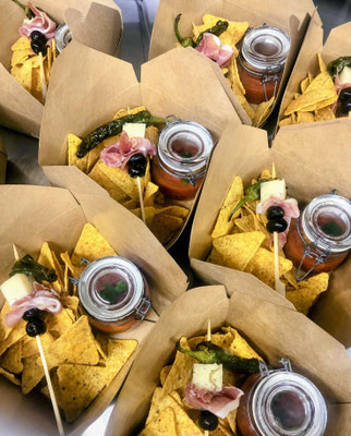 Homemade Salsa & Tortilla Chips, Street Corn Salat im Tacco, Gaspacho im Weckglas, Manchego, Serrano, Oliven, Piementos,