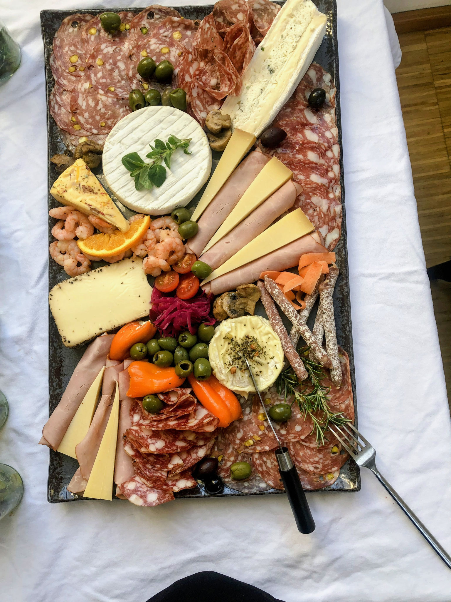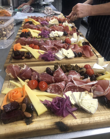 Auswahl ital. Salami, Serrano, Kräuterschinken, Melone, Grilltomate, hausgemachte Remoulade, Oliven, Antipasti