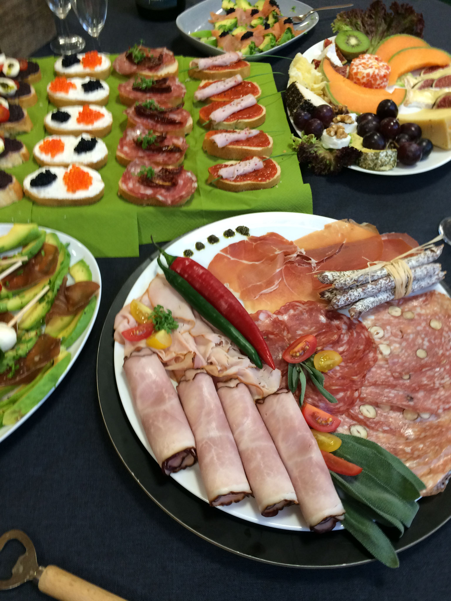 Schoko-Brötchen, Party-Brötchen, Lachs, Käse, Schwarwälder Schinken und Käse aus Gersbach, Roasted Banana-Schoko Oats & Joghurt im Weckglas, Prosecco-Döschen