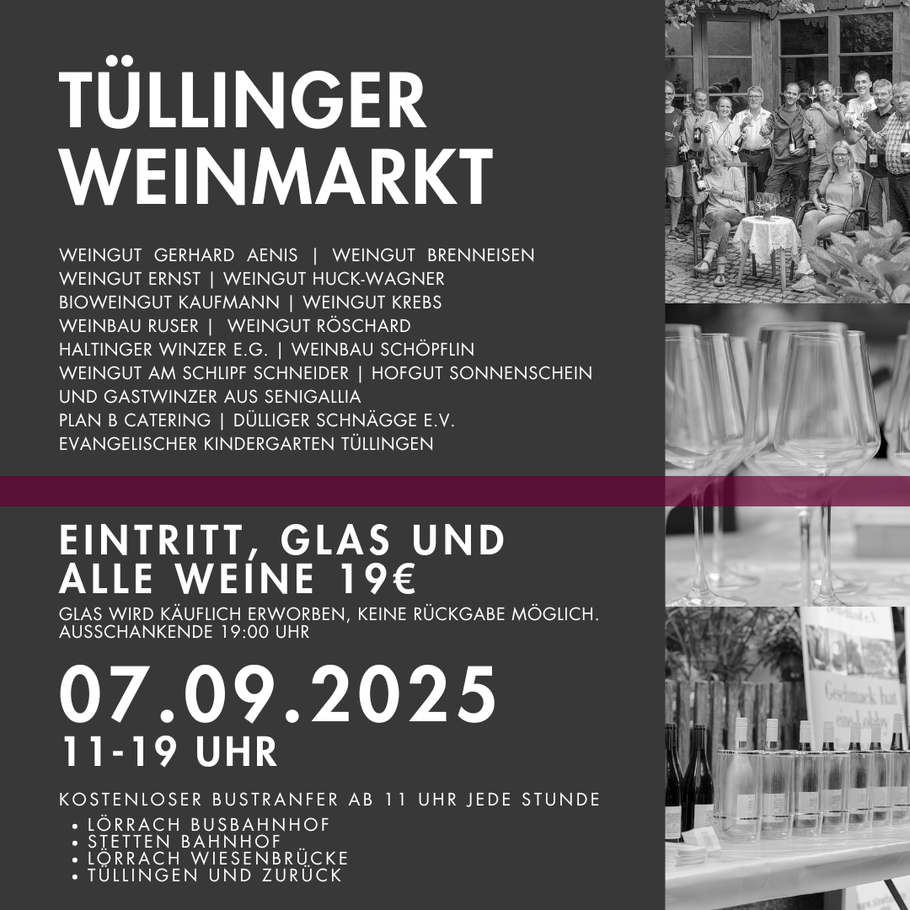Im September dreht sich bei uns alles um Wein. Natürlich aus der Region. Ihr findet uns mit unseren Food-Spezialitäten auf dem Tüllinger Weinmarkt. Außerdem planen wir ein kleines, feines